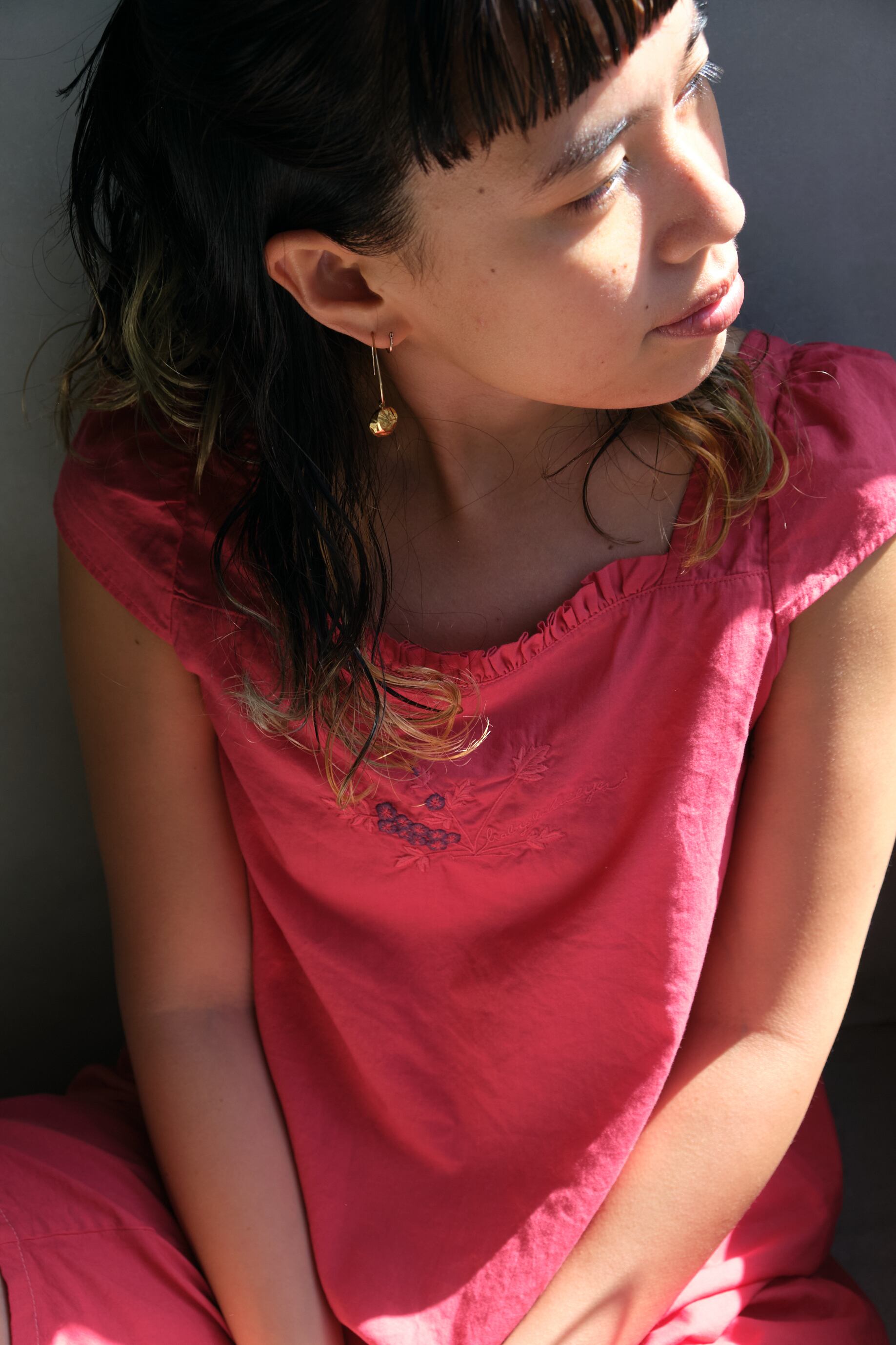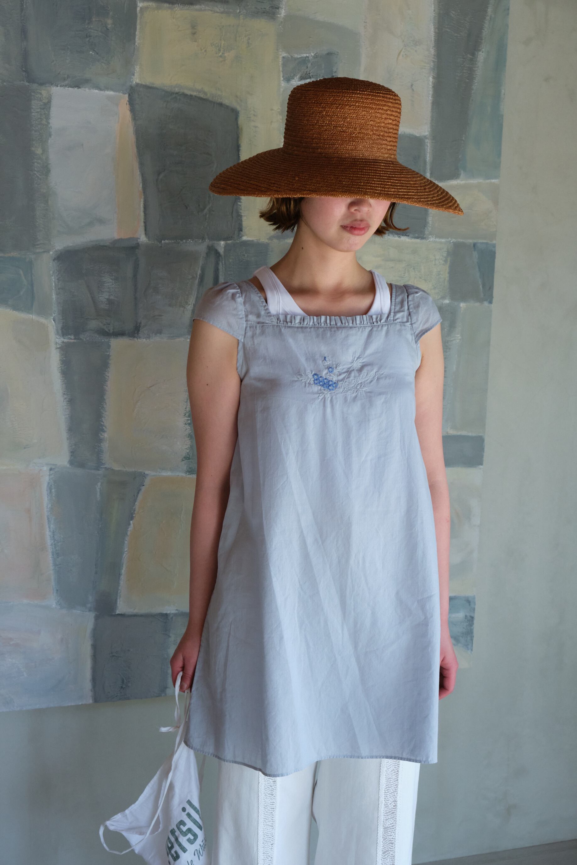 小ぶりな袖付き、胸元にはNemophilaの刺繍が入ります。